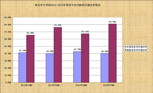附:南京审计学院2012-2015年英语专业TEM8首次通过率情况