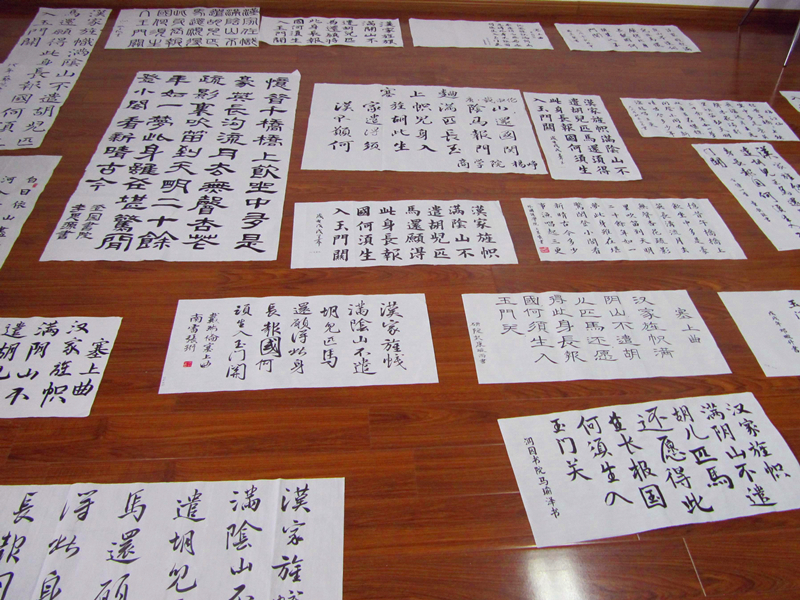 在10月24日下午的决赛现场,校语委办公室刘顺主任、福利吧 王军副院长亲临决赛现场视察“古诗词与语言文字常识测查”、“古诗词硬笔书写”、“古诗词软笔书法”、“学生组古诗词诵读”、“教工组古诗词诵读”五个赛场的比赛情况。