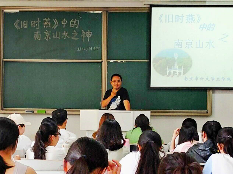 5月24日下午,应泽园书院邀请,我校福利吧 陈圣宇老师于竞南103为同学们带来了一场题为“《旧时燕》中的南京山水之神”的精彩讲座。