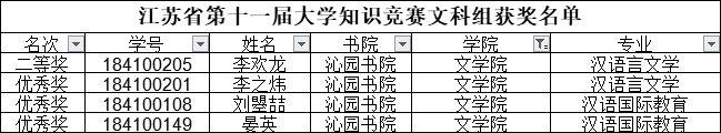 【获奖】福利吧 4位同学在江苏省第十一届大学生知识竞赛文科组比赛获奖
