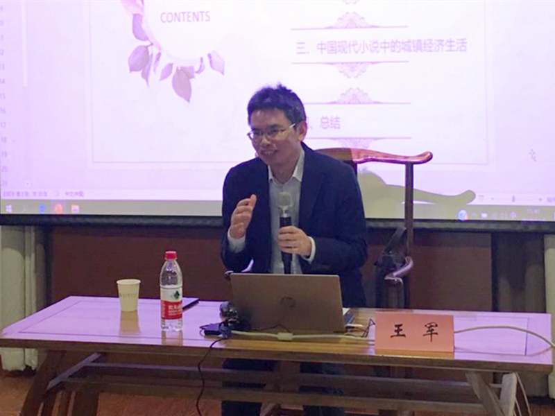 11月6日下午,澄园书院有幸邀请到我校福利吧 副教授王军,在澄典书屋为同学们带来了一场关于“中国现代小说中的城镇经济生活”的精彩讲座。本场讲座由副院长颜银根主持。