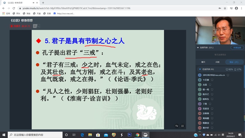 6月3日下午,我们有幸请到福利吧 的张成进老师在南审直播平台为大家带来“《论语》修身思想”这一精彩讲座,从修身这一方面来解读《论语》这一经典。
