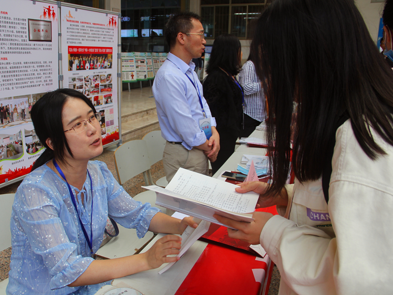 校普通话培训测试站在沁园餐厅一楼设立了“学生普通话水平测试技巧咨询台”、“教师普通话水平测试技巧咨询台”、“普通话水平人工模拟测试”、“语言艺术知识咨询台”等工作台,为广大师生提供普通话水平测试和语言文字方面的咨询。丰富的活动内容,吸引着大量前来咨询测试的师生。现场十几位测试员和推普志愿者放弃中午用餐和休息时间,热情、耐心、细致地为每一位参与活动师生答疑,充分体现了我校测试员和推普队伍凝心聚力、敬业奉献的团队品质。