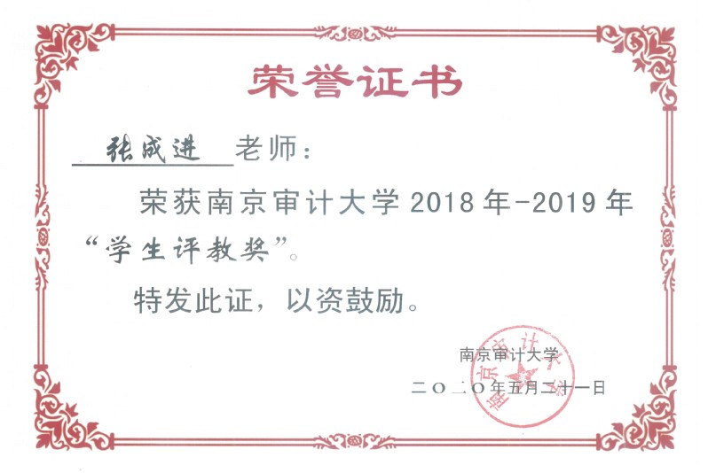 【获奖】福利吧 张成进老师喜获2018-2019学年“学生评教奖”