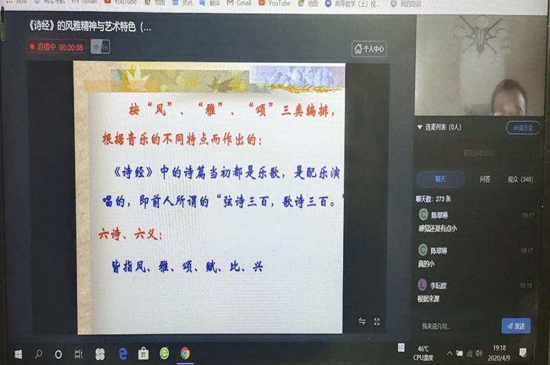 4月9日晚,泽园书院邀请福利吧 施常州老师通过线上直播平台为同学们带来一场《诗经》赏析的讲座。