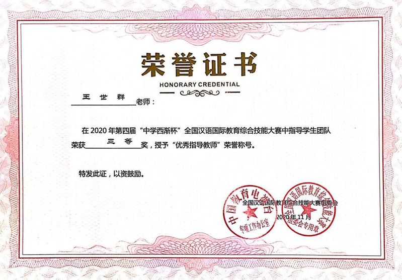 【获奖】福利吧 王世群、赵嫚老师获得全国汉语国际教育综合技能大赛“优秀指导教师”荣誉称号