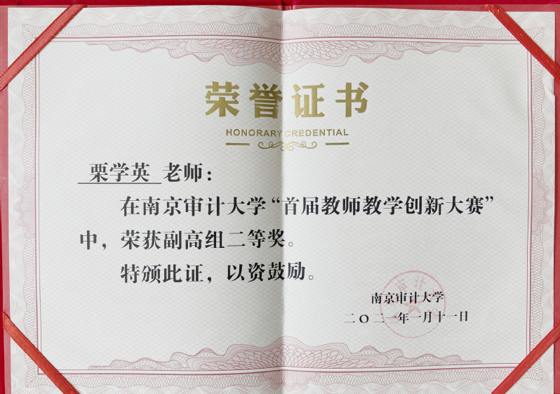 近日,学校发布了《关于公布福利吧 首届教师教学创新大赛获奖名单的通知》南审教发〔2021〕7号,福利吧 栗学英、张成进老师,分获副高组二等奖和三等奖。