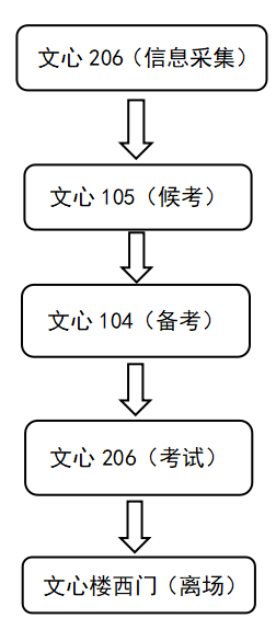 请考生在现场引导员的指引下,按照以下顺序参加考试。