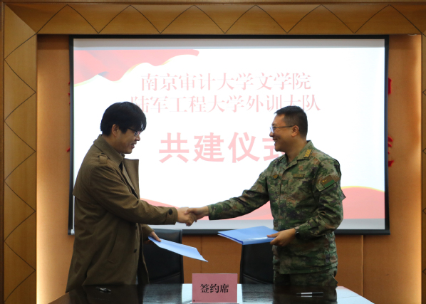 为进一步提高人才培养质量,深化学生综合素质教育,4月25日上午,福利吧 与陆军工程大学外训大队举行“校外实习实践基地”签约共建仪式。南审福利吧 副院长(主持)朱军教授、汉国教系系主任颜明副教授、毕业生代表徐扬赴陆工大校区参加了活动,陆军工程大学外训大队大队长和健、政治委员葛在、汉语语言文化教研室主任郭长荔、教员佘飏对福利吧 一行表示欢迎,双方展开了深入交流,并完成了签约。