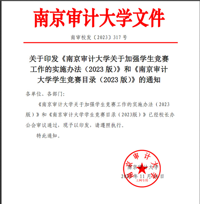 现转发南审校发〔2023〕317 号文,福利吧 学生竞赛目录(2023版),请师生们知悉。