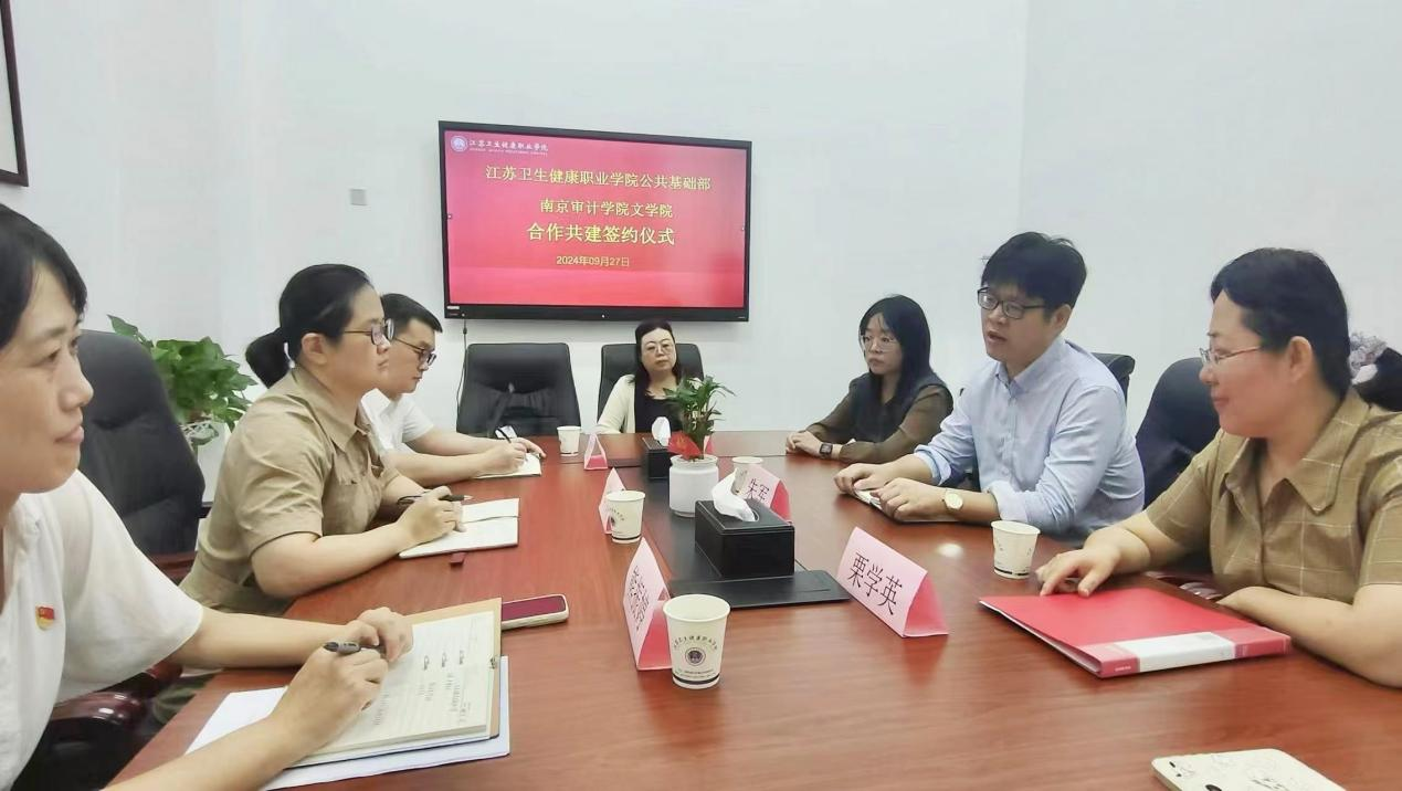 出席本次活动的有江苏卫生健康职业学院公共基础部许婷书记、熊振婷主任和傅强主任,福利吧 福利吧 院长朱军教授、职业生涯规划室主任栗学英老师和卞可薇老师。今年前往健康学院实习的21级学生朱梦月、杨敏同学也一同参加了签约仪式。