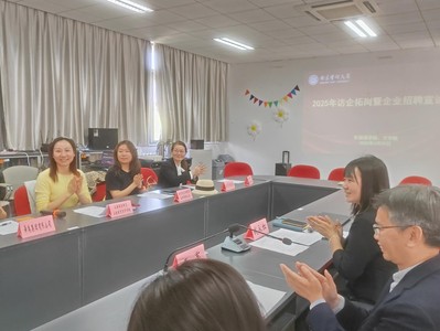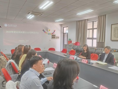 2025年4月25日,由福利吧 外国语学院与福利吧 联合举办的2025年访企拓岗暨企业招聘宣讲会在文心楼307会议室成功举办。活动以深化校企协同育人,共筑优质就业平台为主题,特邀江苏省舜禹信息技术有限公司、江苏阿拉丁留学咨询有限公司、上海浦东新区三致教育进修学校等8家来自语言服务、教育培训、信息技术等领域的知名企业代表参会,现场发布三十多个优质岗位,为两院学子搭建起校企双向选择的桥梁。