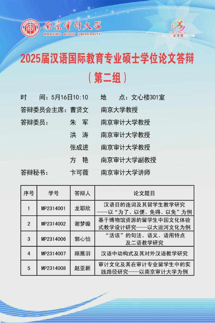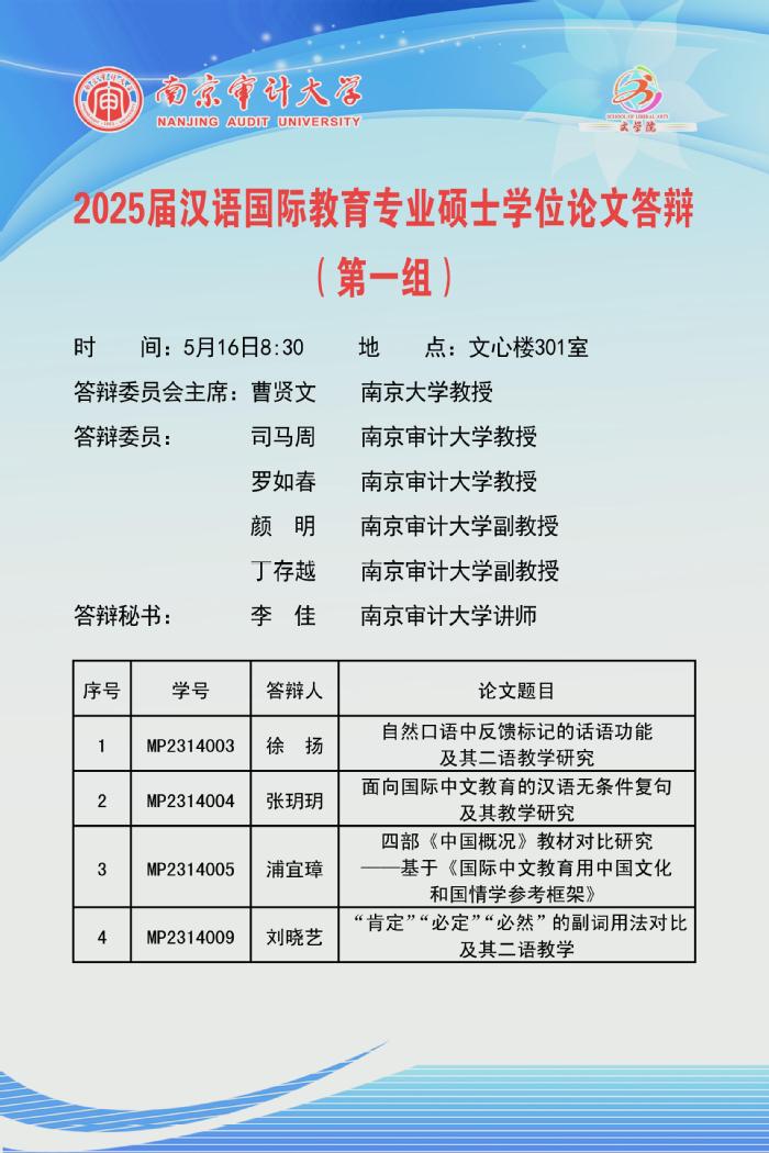 2025届汉语国际教育专业硕士研究生学位论文答辩公告